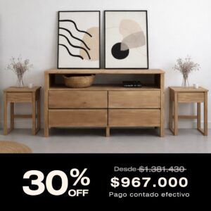 Combo Wood: Cómoda + 2 Mesas de Luz
