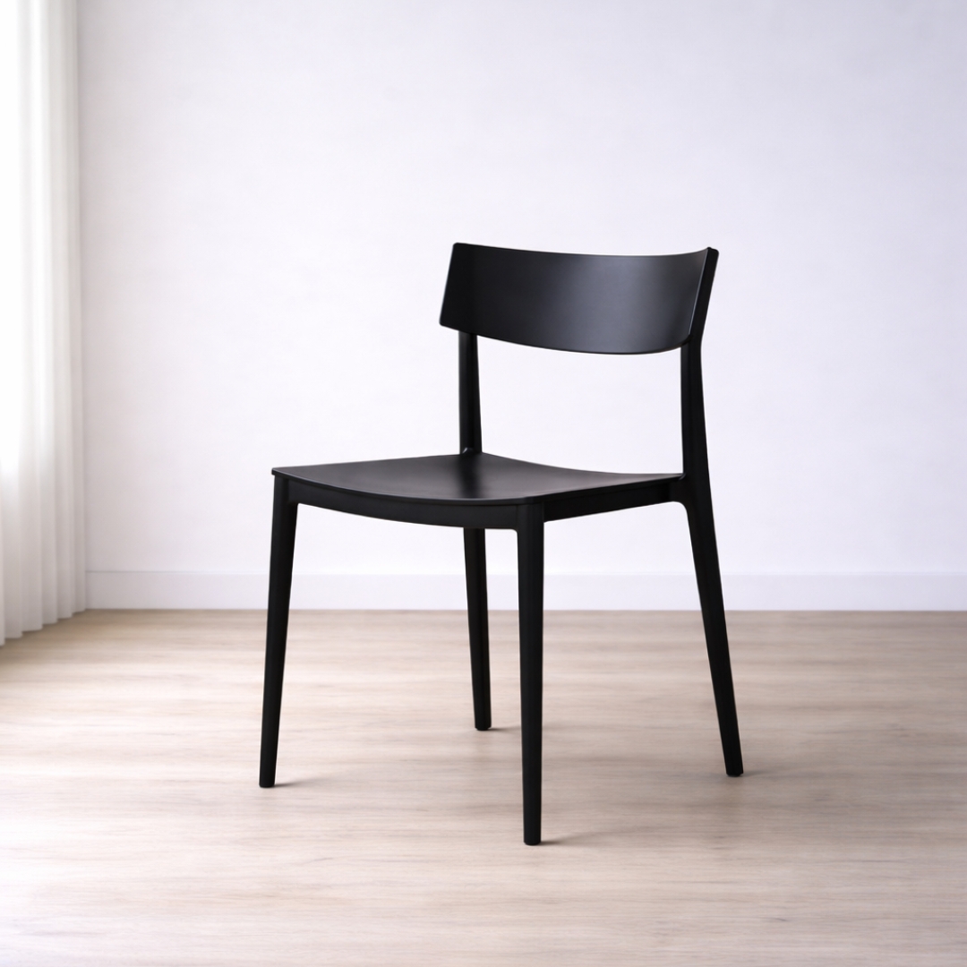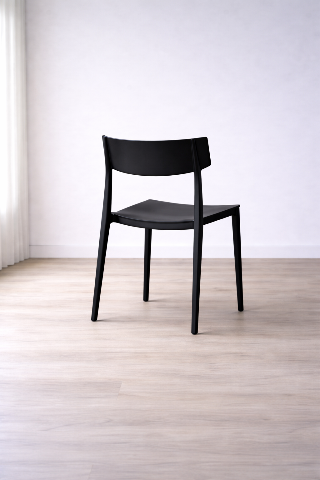 Disponible en negro o blanco, esta silla es la síntesis perfecta entre vanguardia y funcionalidad. Su diseño de líneas puras y acabado mate aporta una presencia sobria, ideal para ambientes que buscan sofisticación y claridad visual.