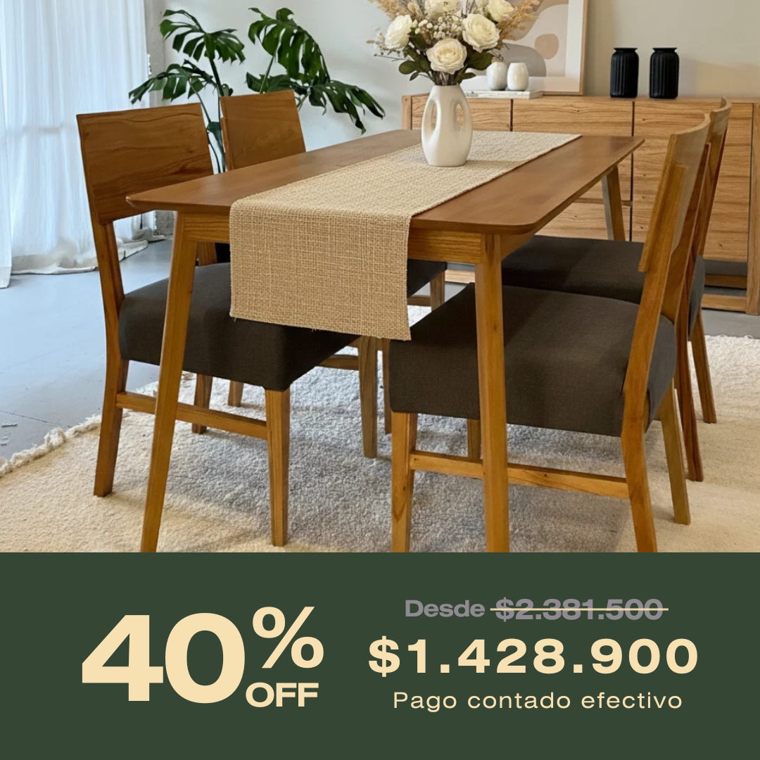 - Mesa de 1,36 m + 4 sillas: $ 1.997.334 (12 cuotas de $166.445)