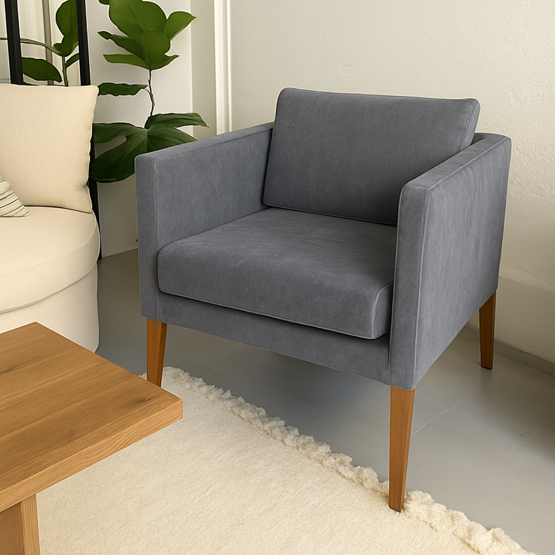El diseño de esta butaca nace a partir de un cubo. Los apoyabrazos son angostos, y los almohadones independientes son delgados y aumentan el confort. Por su aspecto, este sillón de 1 cuerpo moderno combina muy bien tanto en viviendas como en oficinas. Disponible en distintas opciones de telas y colores.