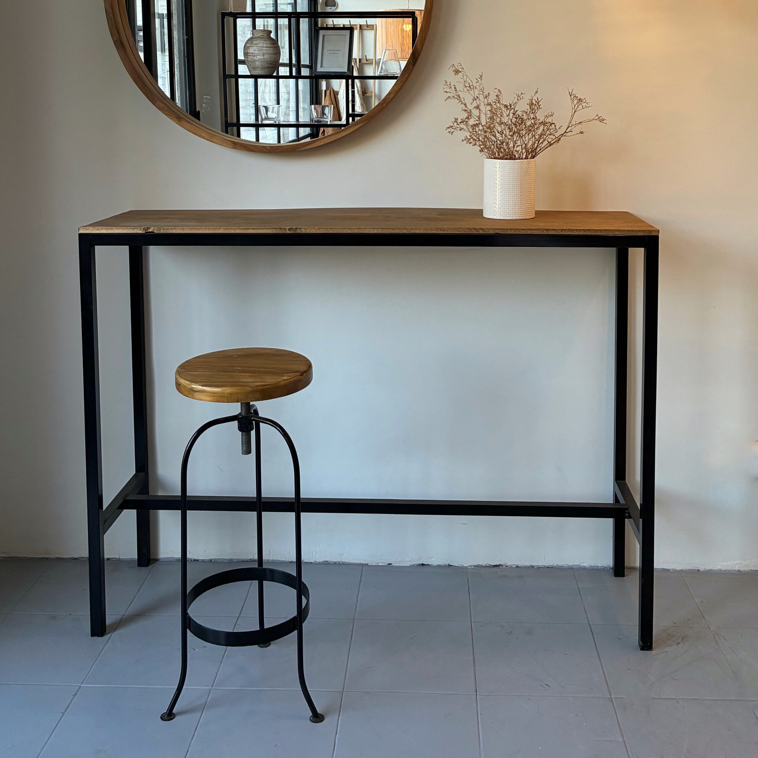 De Signature Collection. Banqueta realizada en hierro con asiento de madera maciza de altura regulable, de aires rùstico campestre.