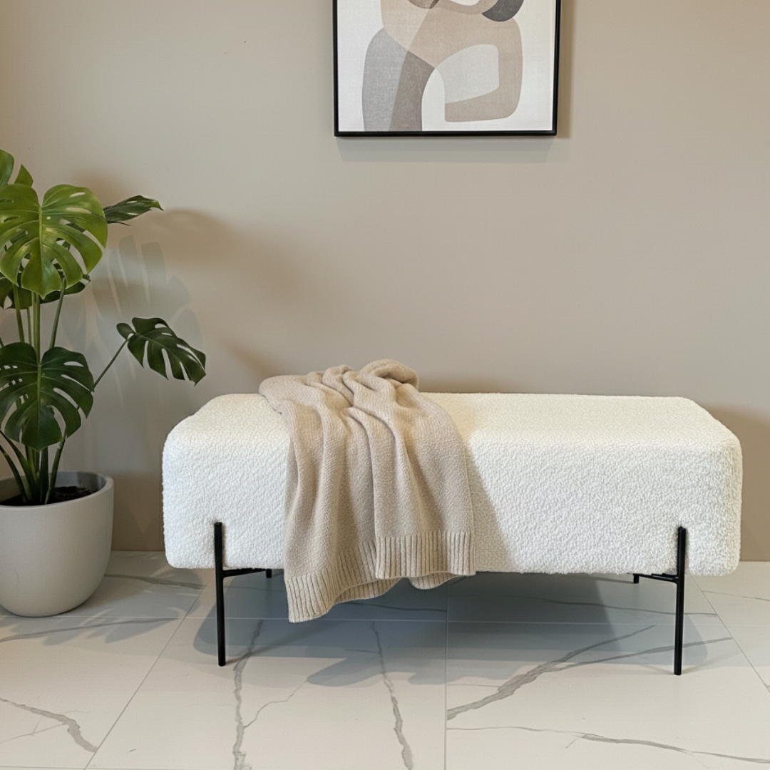Banqueta de líneas simples y minimalistas, que se destaca por sus patas de hierro. Perfecta para ambientes contemporáneos donde se busca funcionalidad y estilo.