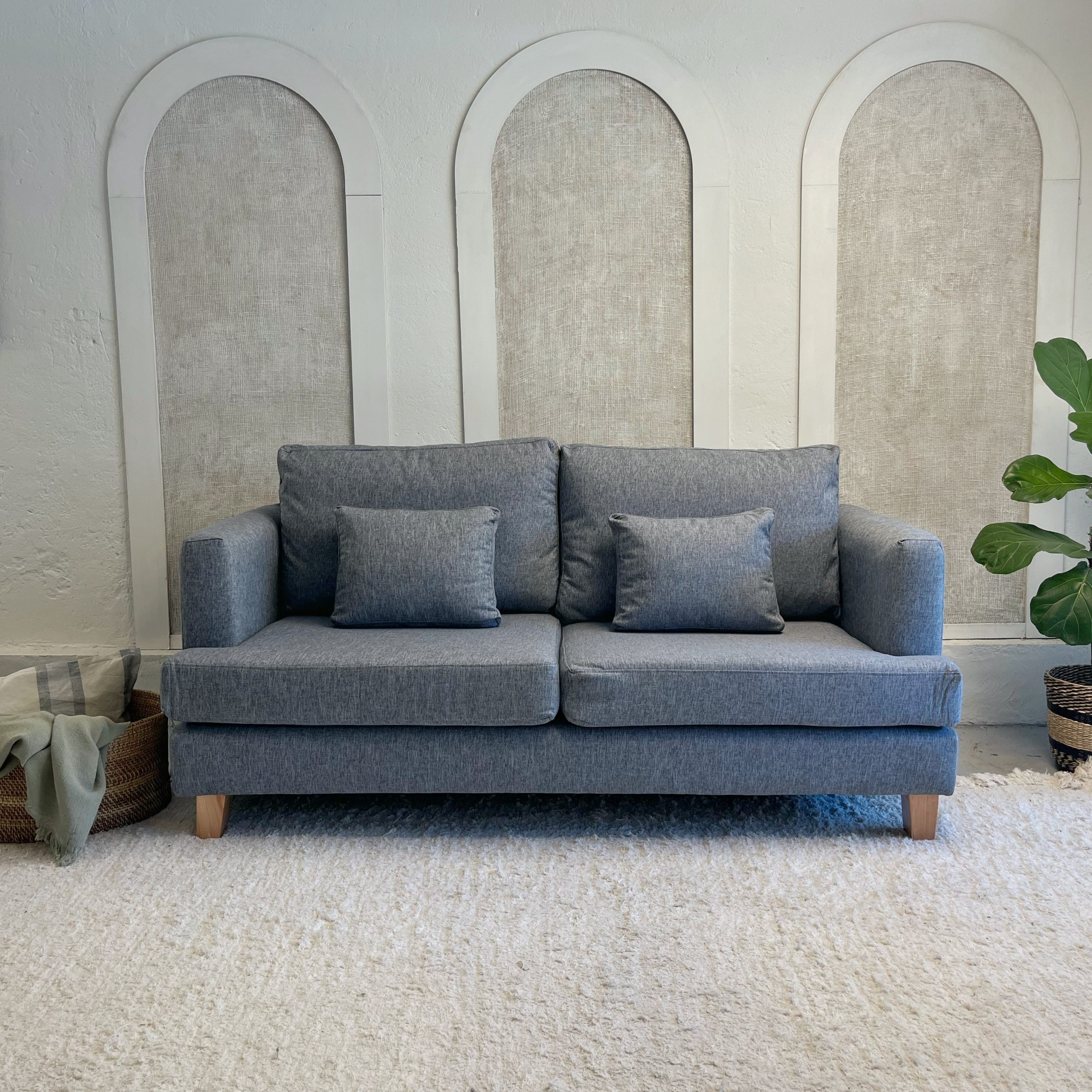 Este sillón de dos cuerpos pequeño es sin duda la mejor opción para ambientes chicos, ya que su diseño está bien balanceado entre el confort y pequeñas dimensiones. Disponible en distintas opciones de telas y colores.